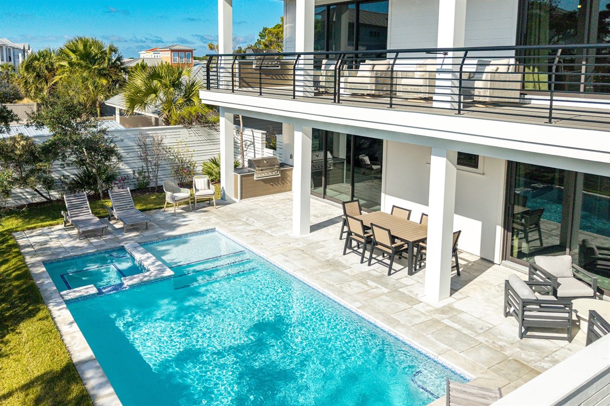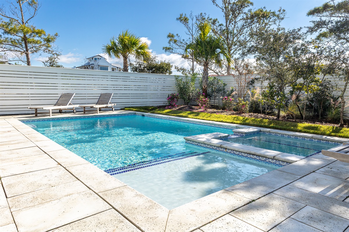 Unwind in your private pool and hot tub, or soak in the sun on comfortable loungers. After a day at the beach, enjoy sunset views from the top-floor balcony overlooking both the Gulf of Mexico and a rare coastal dune lake.